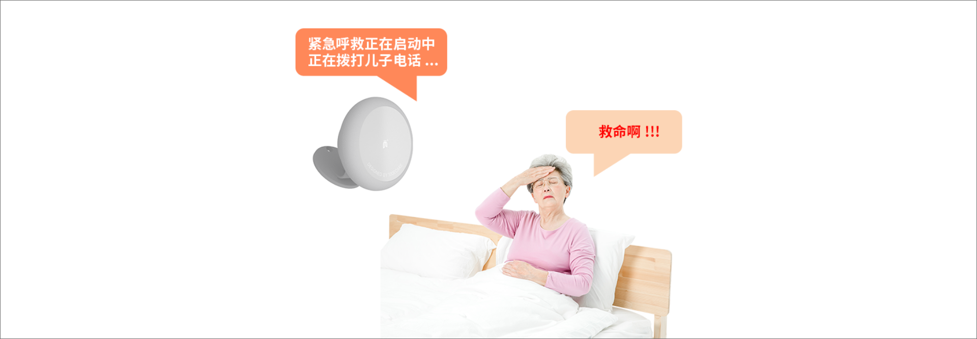 内置智能AI语音识别呼救功能,长者在紧急情况下只需呼喊“救命”,即可快速启动紧急呼救,为自己争取黄金救援时间。