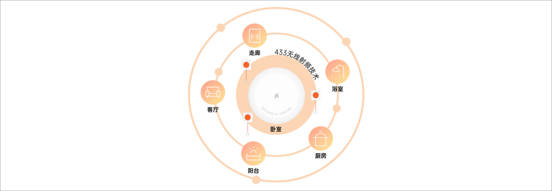 利用升级的433增强无线射频技术,UE支持配对多个紧急呼叫按钮,实现100米无障碍有效通信,让长者不管在卧室、走廊或是洗手间等任意区域遇到危险时都能随时呼、主动呼,满足“家床”项目在不同场景下的紧急呼叫需求。